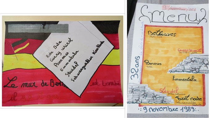 A l’occasion de l’anniversaire de la chute du mur de Berlin (le 9 novembre 1989), les collégiens ont pu découvrir quelques plats traditionnels, notamment une spécialité autrichienne, le Strudel, un gâteau aux pommes, ou encore se régaler avec une Forêt Noire, gâteau originaire de Rhénanie-du-Nord Westphalie.